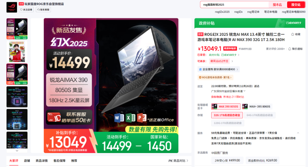 三、ROG 幻X 2025 锐龙AI MAX 笔记本价格