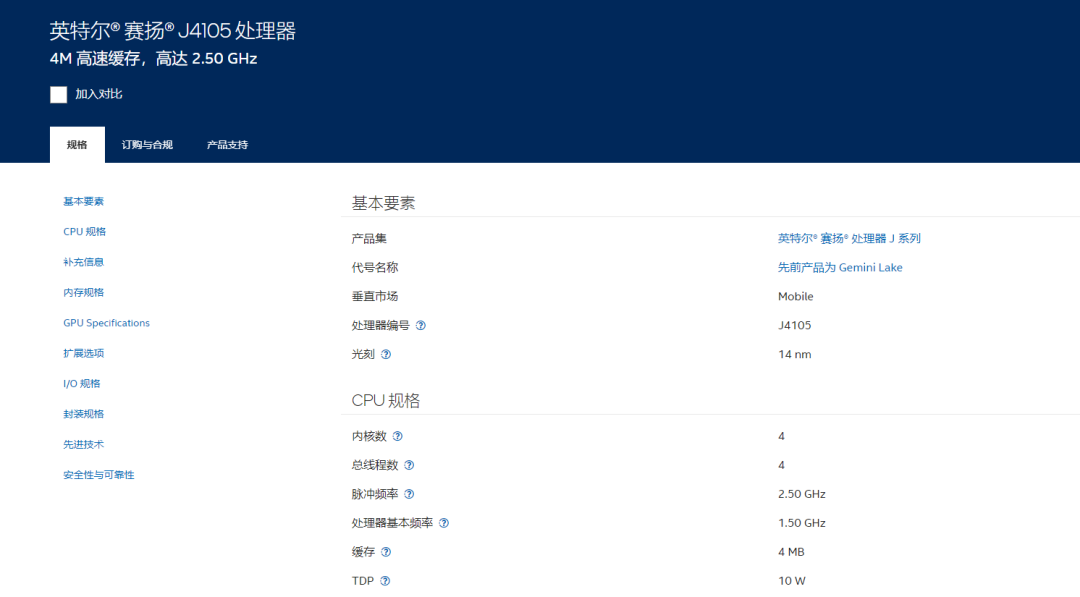 配置参数方面,这款小主机搭载的就是J4105的ITX主板,板载J4105处理器,有了解的应该比较清楚这款处理器,性能不咋地,但胜在低功耗,TDP仅10W,待机6W左右,而且自带的核显支持4k h265硬解,算是很适合新人尝鲜飞牛。J4105是Intel Celeron系列的一款低功耗四核处理器,主频1.5GHz(最高睿频2.5GHz),采用14nm工艺,适用于嵌入式工控机、轻量级计算及多屏显示场景。