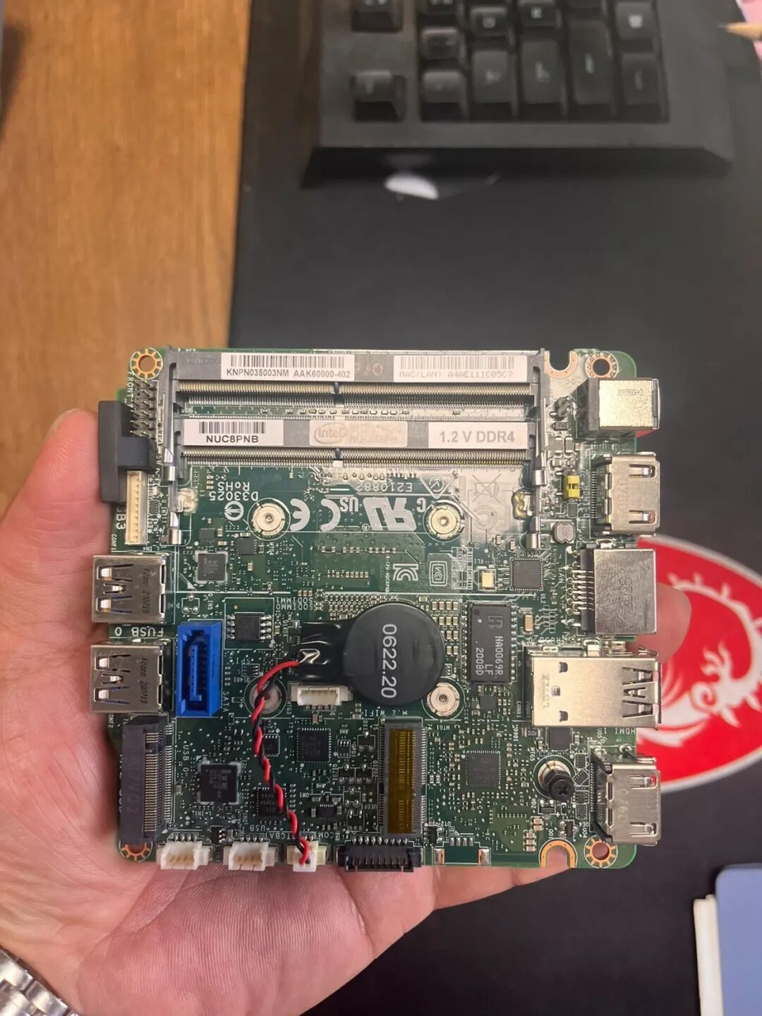 英特尔NUC迷你主机,即Intel NUC迷你电脑,这是英特尔推出的超小型台式计算机产品系列,尤其以体积小巧著称,采用立方体或超薄机身设计,体积普遍小于传统台式机,而且还支持内存和硬盘扩展升级使用。这款Intel NUC8i3PNB主板就是NUC主机型号采用的主板之一,主板仅10*10cm,非常极限的主板尺寸了。