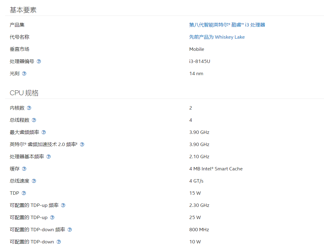 i3-8145U处理器规格参数方面,采用双核四线程配置,基础频率2.1GHz,最高睿频3.9GHz,热设计功耗(TDP)为15W,集成UHD Graphics 620核显,适用于日常办公和基础多媒体任务。性能方面,接近第四代酷睿i5-4310M处理器,适合轻办公、网页浏览、视频播放等基础任务。