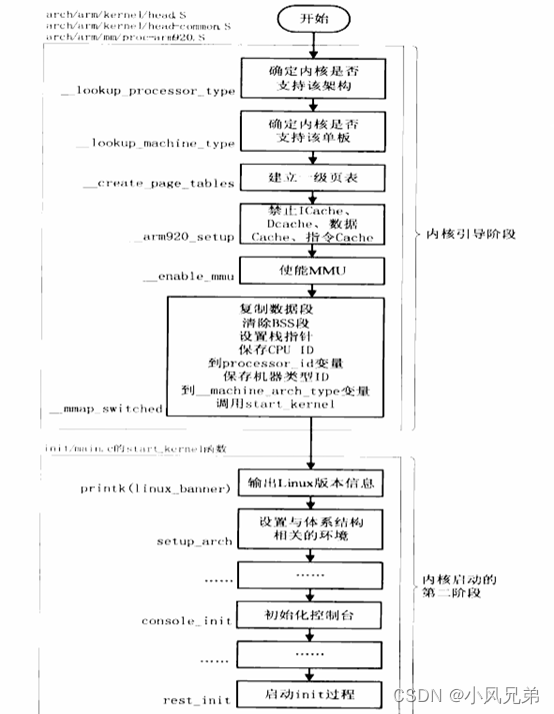 内核启动分为两个阶段,内核引导阶段和内核启动阶段。内核引导阶段又可细分为,自解压搬运,内核启动前预处理。首先介绍自解压搬运流程,再介绍内核启动过程。