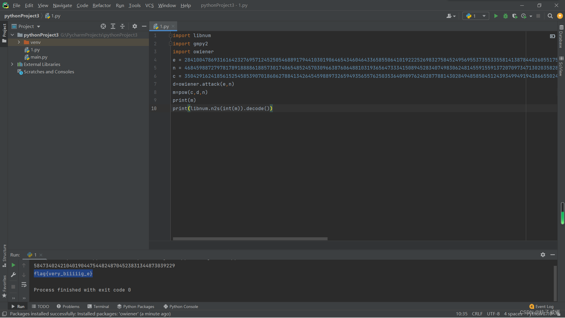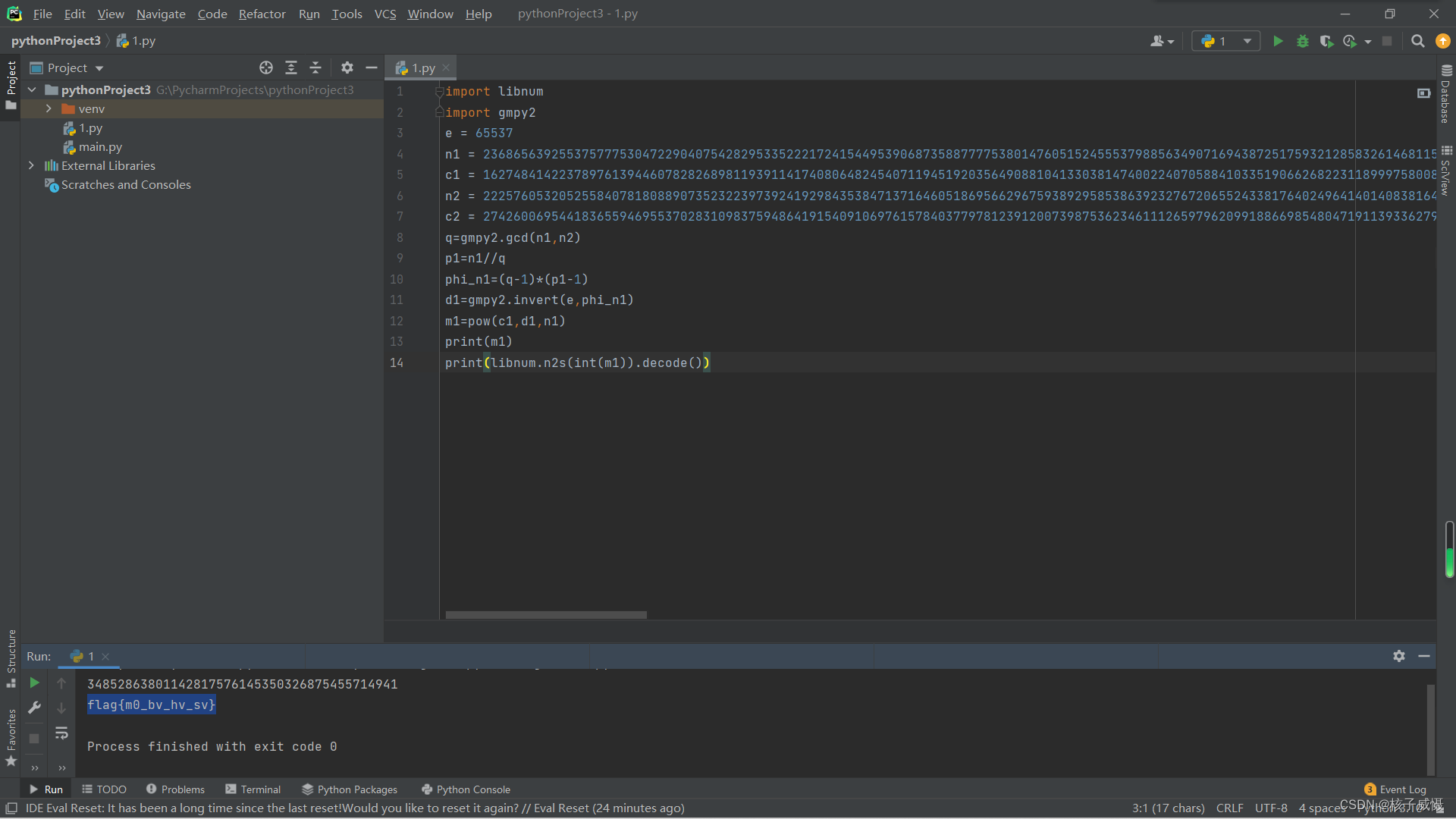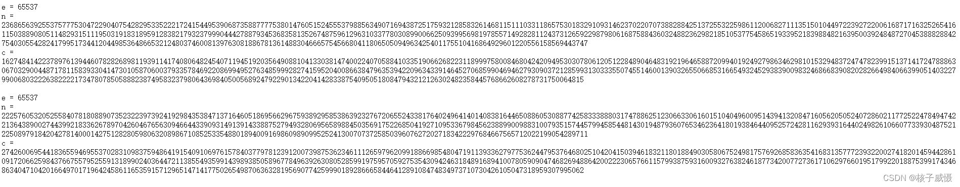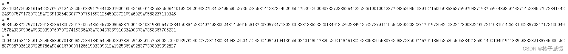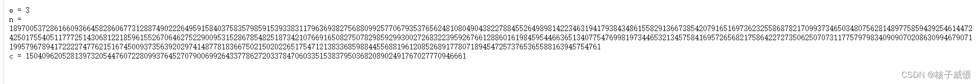 看似和第一题做法一样,仔细一看e很小,n非常大,那么就是低加密指数攻击