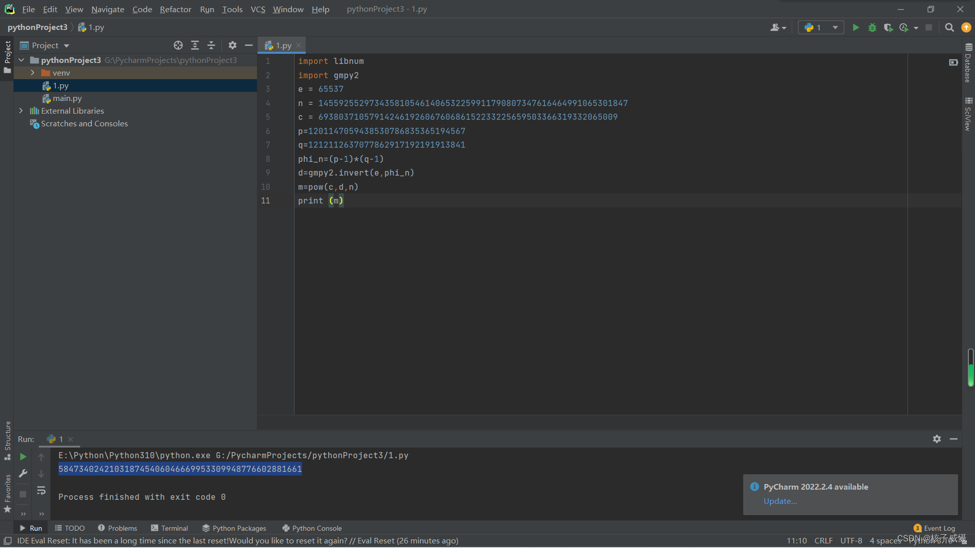 要注意的是,求p1的时候一定要用p1=n1//q而不是p1=n1/q,因为虽然能被整除,但是后者的p1不是int类型,会出事。
