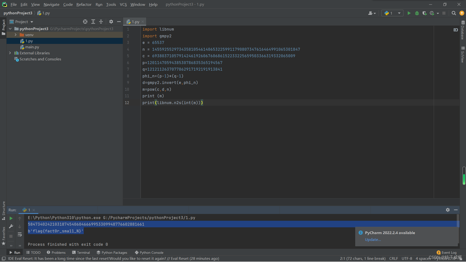 s1,s2,s3=gmpy2.gcdext(e1,e2)