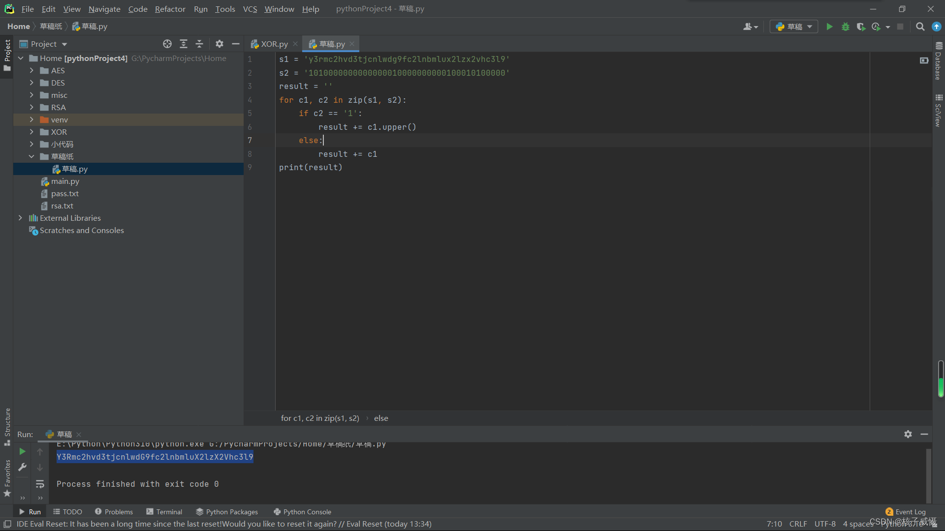 base编码的多=作为补位放在最后面,这里放在了最前面,初步推测密文进行了倒装。直接用base64解码或者其他base解码都无法得到答案,所以用下列代码将其倒装回去 。