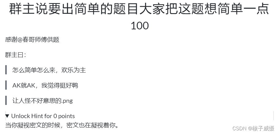根据提示说密文凝视我,于是直接输出密文