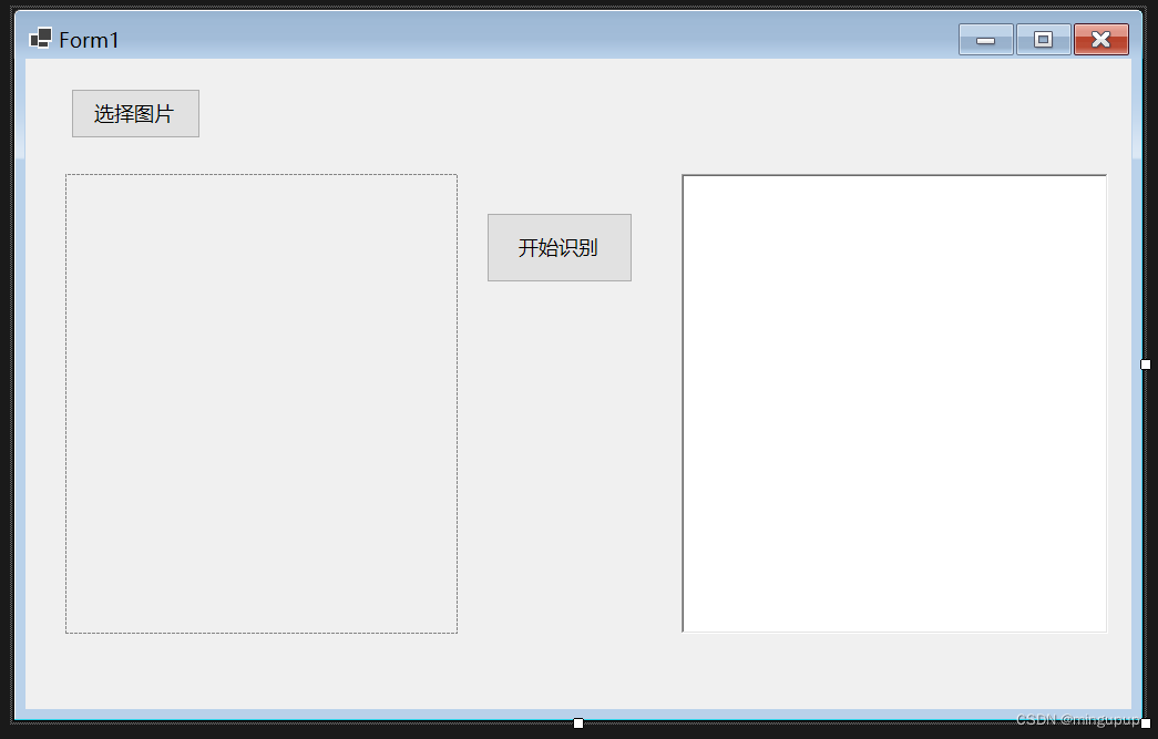 添加了两个按钮控件,一个pictureBox控件和一个richTextBox控件