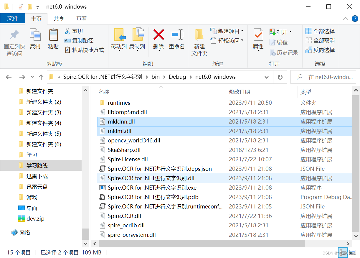 将包中dll复制到项目文件夹>bin>Debug目录下