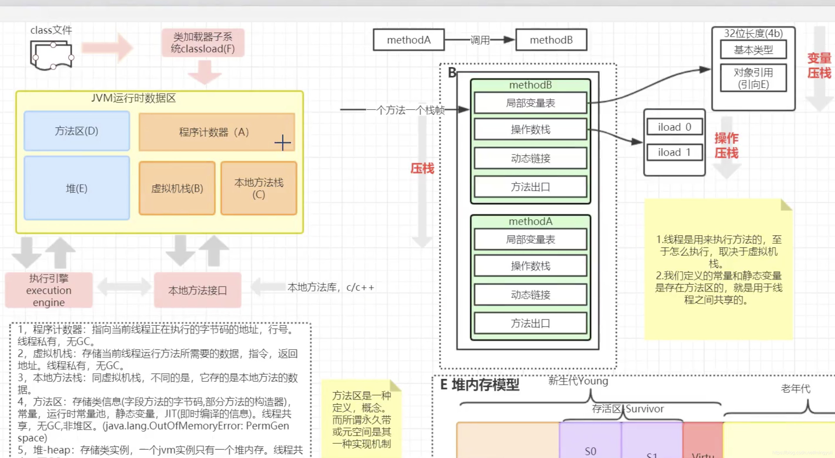 3、方法区与堆关系?是相互指向。方法区中的静态变量如果是一个对象会指向堆中的对象;对中对象会指向方法区中的类元信息。