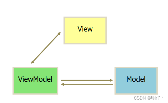 MVVM 模式将 Presenter 改名为 ViewModel,基本上与 MVP 模式完全一致。如果说MVP是对MVC的进一步改进,那么MVVM则是思想的完全变革。它是将“数据模型数据双向绑定”的思想作为核心,因此在View和Model之间没有联系,通过ViewModel进行交互,而且Model和ViewModel之间的交互是双向的,因此视图的数据的变化会同时修改数据源,而数据源数据的变化也会立即反应到View上。