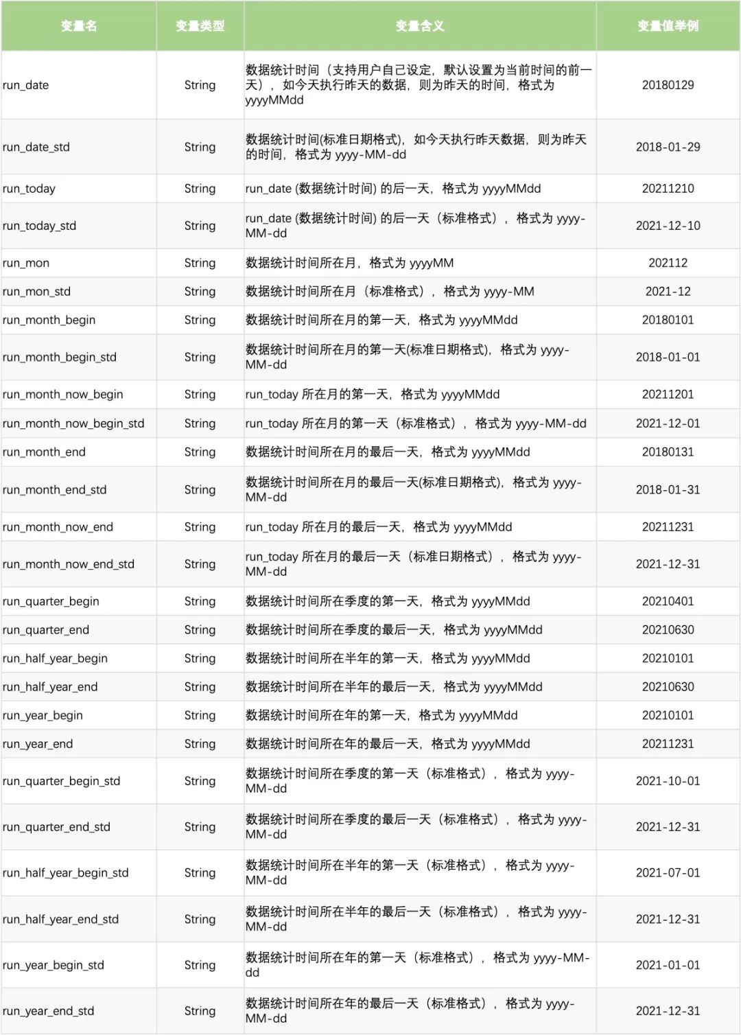 1、run_date为核心自带日期变量,支持用户自定义日期,如果不指定默认为当前系统时间的前一天。