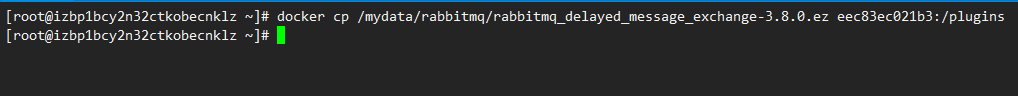 docker cp /mydata/rabbitmq/rabbitmq_delayed_message_exchange-3.8.0.ez 你的COUNTER_ID:/plugins