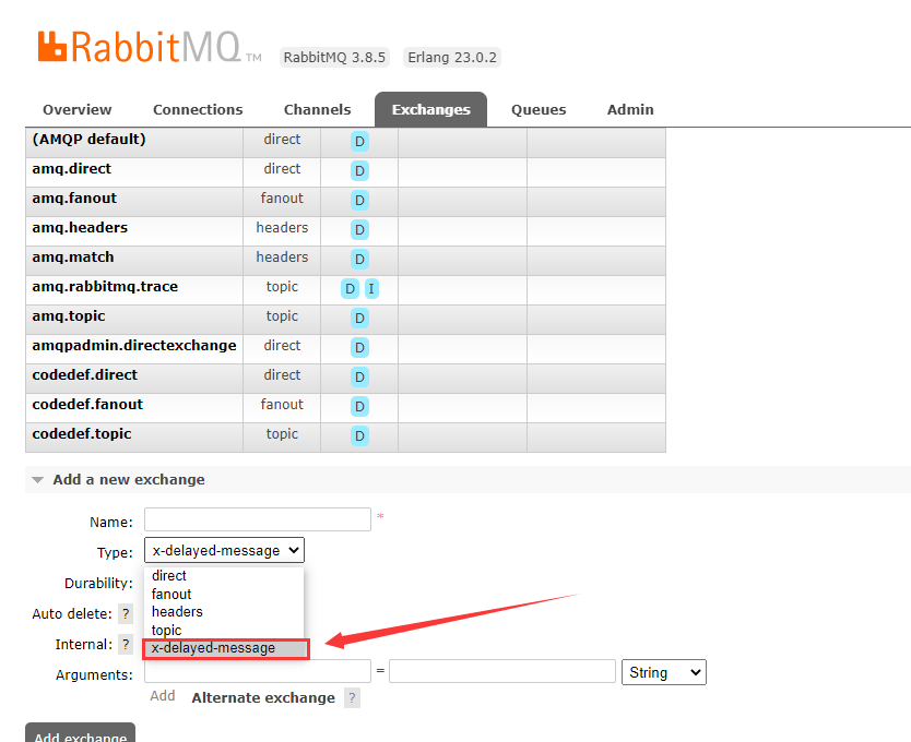 新建延时队列交换机