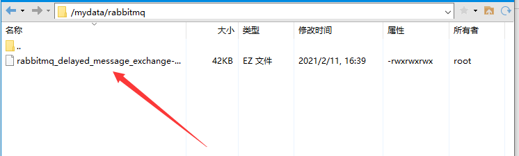 - 可以使用rz命令或者Xftp软件将插件上传 (这里是/mydata/rabbitmq/目录下)