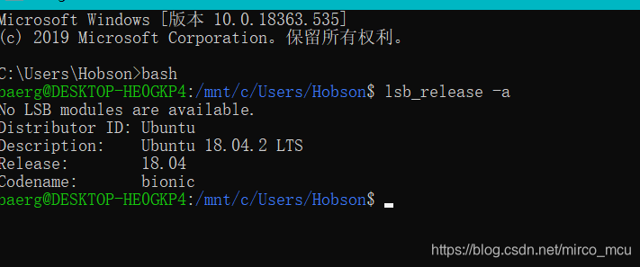 安装完成后,在win10下就可以使用ubuntu所有命令了(当然这个目前只限于命令行,图形界面后面说)