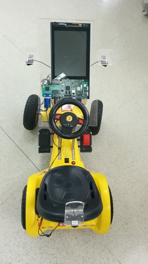 演示平台(如下图)已经成功搭建,相应的软件(包含实时数据采集,鱼眼校正,及图像拼接等算法)也已经调试完毕,实现效果已经达到主流汽车电子厂商的需求。
