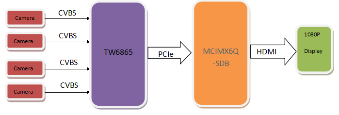 飞思卡尔作为主流汽车芯片提供商,不仅致力于基于以太网的先进驾驶辅助系统的搭建和推广。 同时还敏锐的察觉到了该领域低成本市场的需求。目前已经推出低成本车规等级360度环视解决方案,该方案基于i.MX6平台,通过PCIe接口与英特矽尔(Intersil)TW6865四通道模拟视频采集芯片相连接来实现。