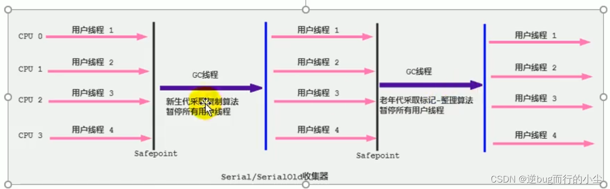 - 在进行GC时,需要停止整个应用的进程,导致用户体验差