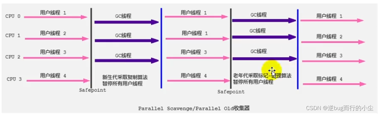 - “-XX:ParallelGCThread”设置STW工作线程数的指,最大为8