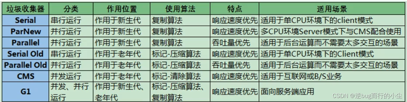 - Hotspot垃圾收集器中,除了G1外,其余垃圾收集器使用内置的JVM线程执行GC的多线程操作,而G!可以采用应用线程承担后台运行的GC工作,即当JVM的GC线程处理速度慢时,系统用应用程序线程帮助加速垃圾回收过程