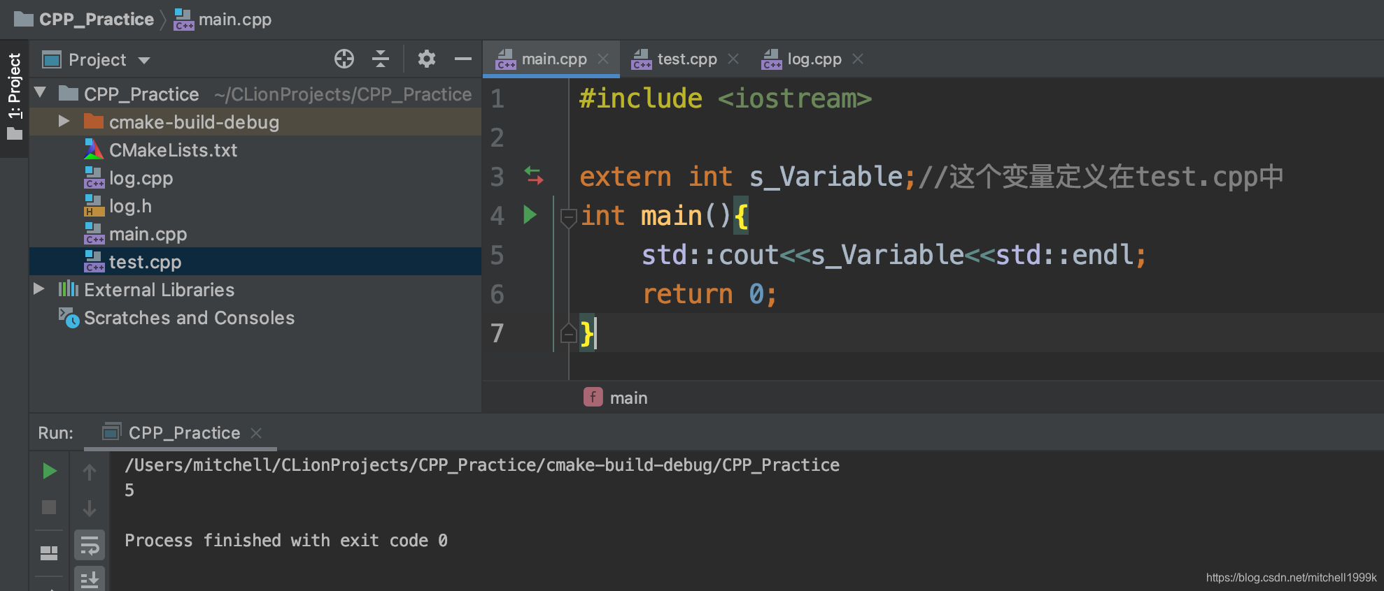 如果在test.cpp文件中的s_Variable 声明为static 在main.cpp可声明同名的变量 也不需要使用extern 使用了会报错 找不到这个变量