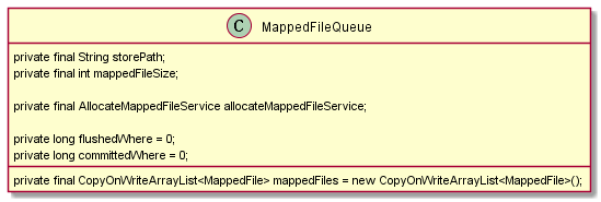 首先调用mappedFileQueue.getLastMappedFile()方法获取最后一个mappedfile对象,MappedFileQueue对象结构如下