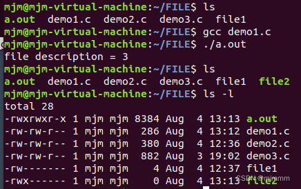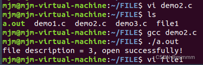 可见,我创建的文档“file1”被自动打开,并分配了文件描述符“3”