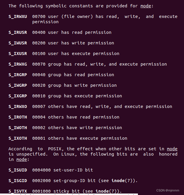 - mode:待创建的文件的访问权限