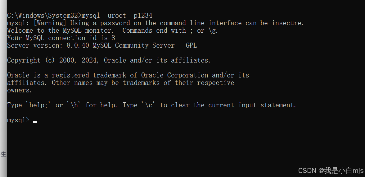 mysql -u用户名 -p密码[-h数据库服务器ip地址 -p端口号]