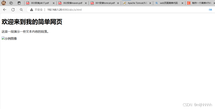 7.真机访问 IP地址:192.168.1.20:8080/abc/a.html