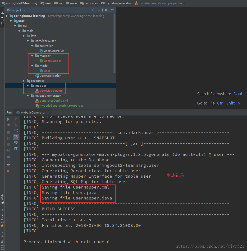 红色部分是主要的依赖及插件,generatorConfig.xml是generator的配置文件