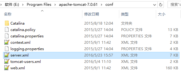 定位到tomcat服务器的安装目录, 找到conf下的server.xml文件