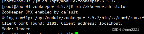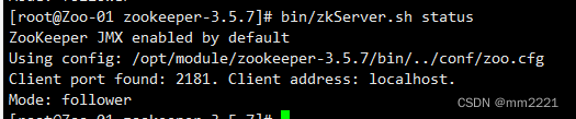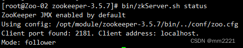 执行 zkServer.sh status 查看状态。