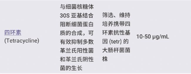 2. 基于抗性基因的选择性抗生素:用于选择和分离含有特定抗性基因的细胞或微生物。