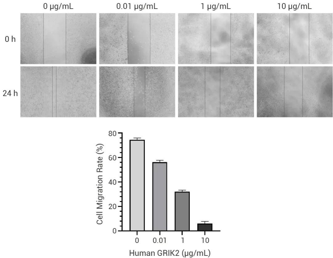 实验结果:Human GRIK 抑制 AGS 细胞的损伤后的“愈合”作用。