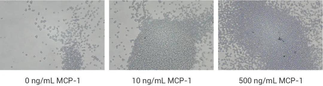 实验结果:Mouse MCP-1 有促进 THP-1 细胞正向定向迁移,且呈现出浓度依赖性。