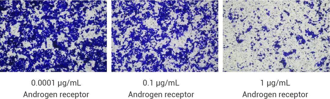 实验结果:Human Androgen receptor 抑制 PC-3 细胞的迁移,随着浓度增加,迁移呈现负趋势。