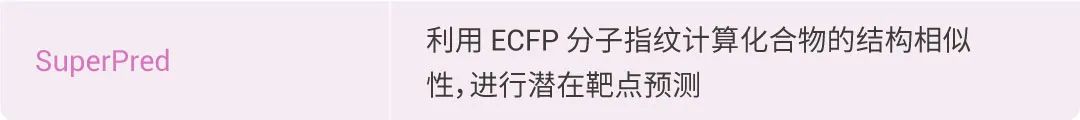 计算机预测通常利用数据挖掘、药效团模型匹配、正反分子对接技术和药物-靶标相似性算法等,识别小分子可能作用的靶点。下面是一些常用的靶标预测网站,有需可参考喔~