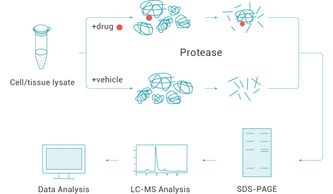 药物亲和反应靶点稳定性(Drug affinity responsive target stability, DARTS)的概念最初由 Brett Lomenick 等人于 2009 年提出,其基本原理是靶蛋白与小分子配体结合后稳定性增加,可以增强靶蛋白对蛋白酶酶解作用的抗性,以此来进行靶蛋白筛选,同时无需对小分子进行修饰[2]。