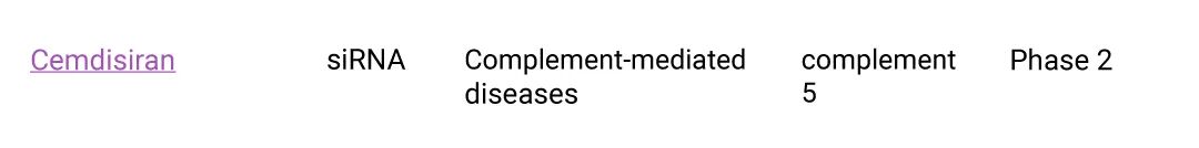 [2] Ebenezer O, et al. Development of Novel siRNA Therapeutics: A Review with a Focus on Inclisiran for the Treatment of Hypercholesterolemia. Int J Mol Sci. 2023 Feb 16;24(4):4019.