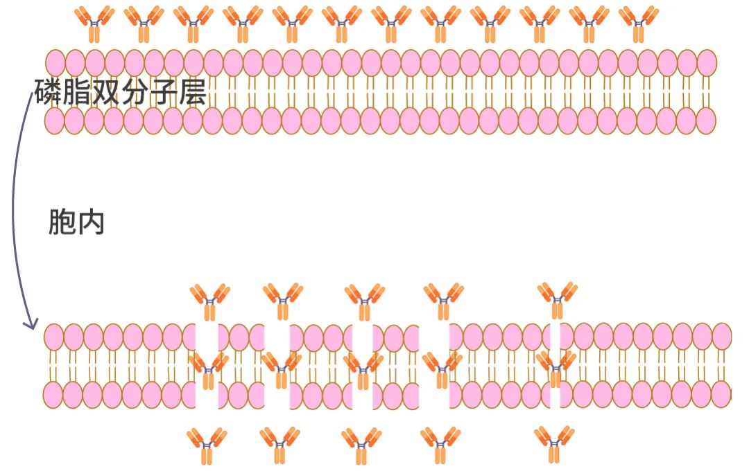 通过去污剂部分溶解细胞膜,形成孔洞,从而使抗体能够到达细胞内表位,与细胞内的抗原结合。(该步骤可选做;通透步骤会破坏细胞膜,细胞膜表面抗原不适合选择通透实验)