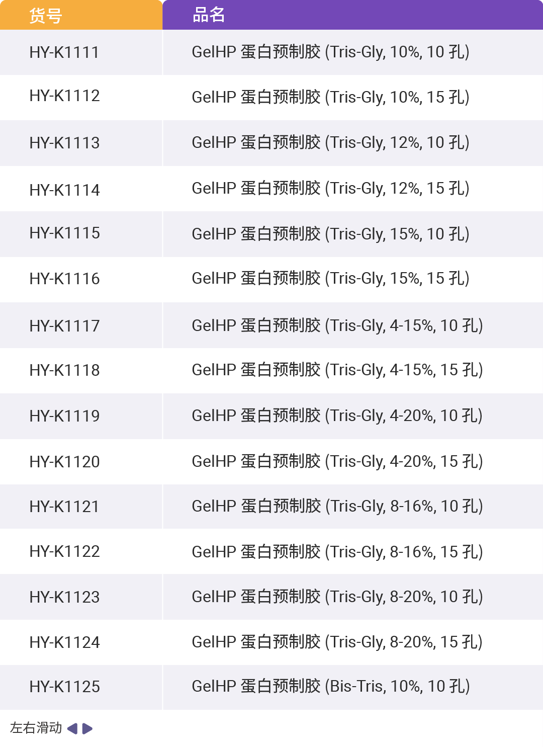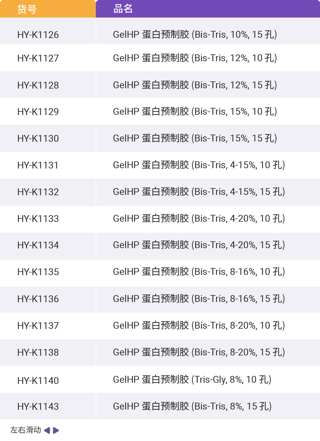 | GelHP 蛋白预制胶 (Bis-Tris, 12%, 10 孔) (HY-K1127) 低 pH 上分高手,跑胶条带干净漂亮,科研图一眼心动 |
