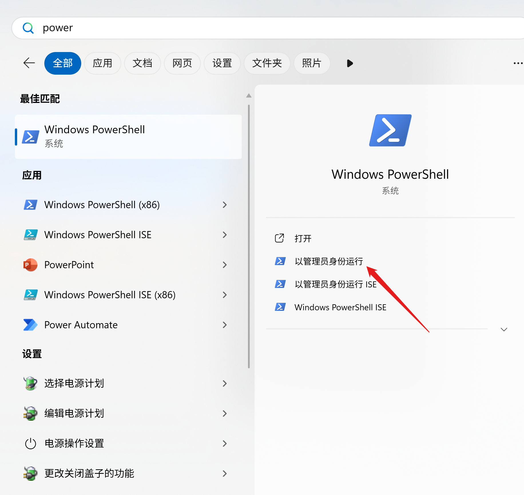 首先需要调整 PowerShell 执行策略,允许运行脚本: