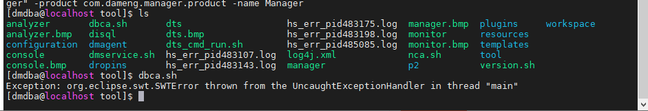 经查发现此账户为root转为dmdba造成,关闭直接以dmdba登录运行正常