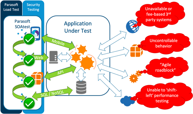使用Parasoft SOAtest的记录能力,就有可能在其环境中捕获应用程序的行为。Parasoft Virtualize对外部依赖关系的行为进行建模,使得删除和模拟依赖关系的行为成为可能,动态地在运行中切换出真实与虚拟。使这些服务和依赖关系在虚拟中可用和稳定,加速了测试过程并实现了连续测试。