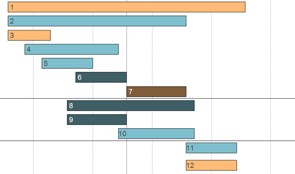- 颜色还可以用来定义甘特图的语义。因此,它们帮助用户更快地理解甘特图所呈现的完整且常常复杂的现实。