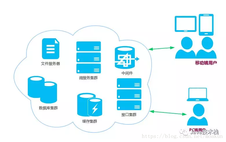 3、增加分布式缓存、搜索、文件、消息队列、非关系型数据库等中间件;