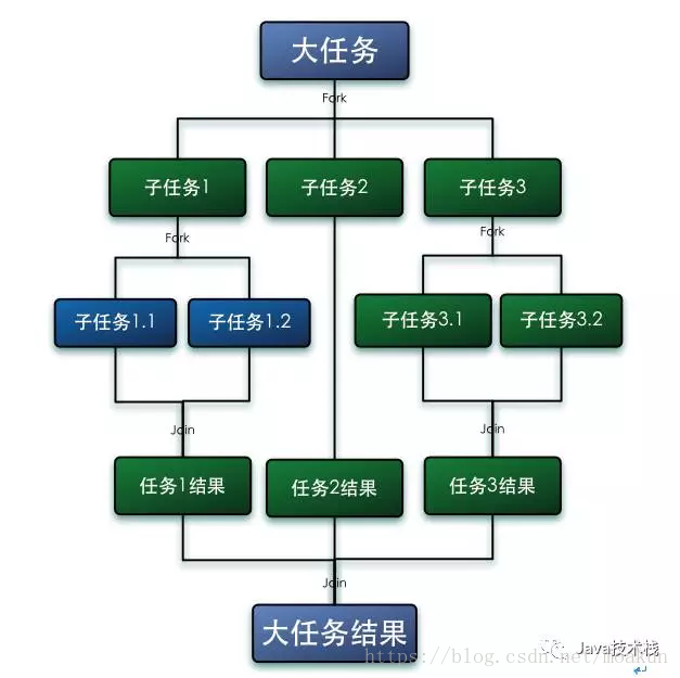 我们可以通过Fork/Join单词字面上的意思去理解这个框架。Fork是叉子分叉的意思,即将大任务分解成并行的小任务,Join是连接结合的意思,即将所有并行的小任务的执行结果汇总起来。