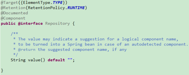用来表示一个平常的普通组件,当一个类不合适用以上的注解定义时用这个组件修饰。