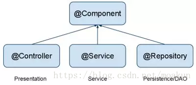 需要注意的是@Controller,@Service,@Repository都有带@Component父注解,说明它们除了基本组件的属性外还有其他的的场景应用,即如果不用SpringMVC其实它们就是一个普通的组件,但普通组件建议最好还是用@Component修饰。